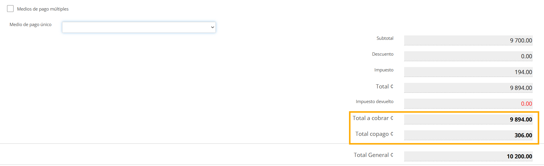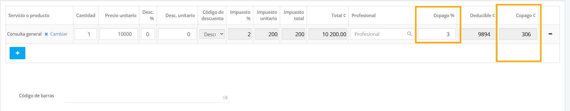 - Automáticamente se van a calcular los montos de CoPago y Deducible por pagar, de acuerdo al porcentaje de copago que aplique.